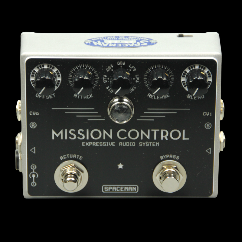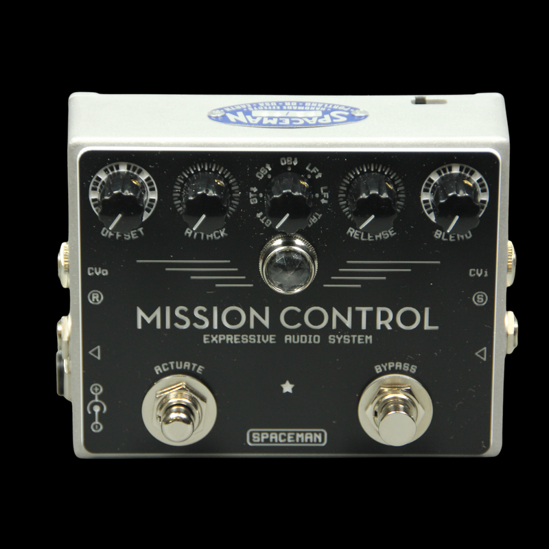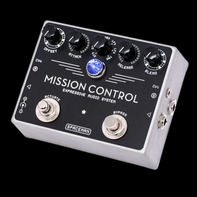 Mission Control is: an Autofader, Signal Router, Dynamic Effects Loop, Wet/Dry Blender, Y-splitter, Two-channel Mixer, Customizable Tremolo, Buffer, Interface for CV and Expression Control, and more. For additional flexibility, multiple Mission Controls can be linked together via the included CV in and out ports.