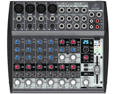 Premium 12-input 2-bus mixer with Xenyx Mic Preamps, British EQs and Multi-FX Processor - 8-Channel Mixer w/ 4 Xenyx Mic Preamps, 4 Stereo Channels, and 1 FX/Aux send per channel