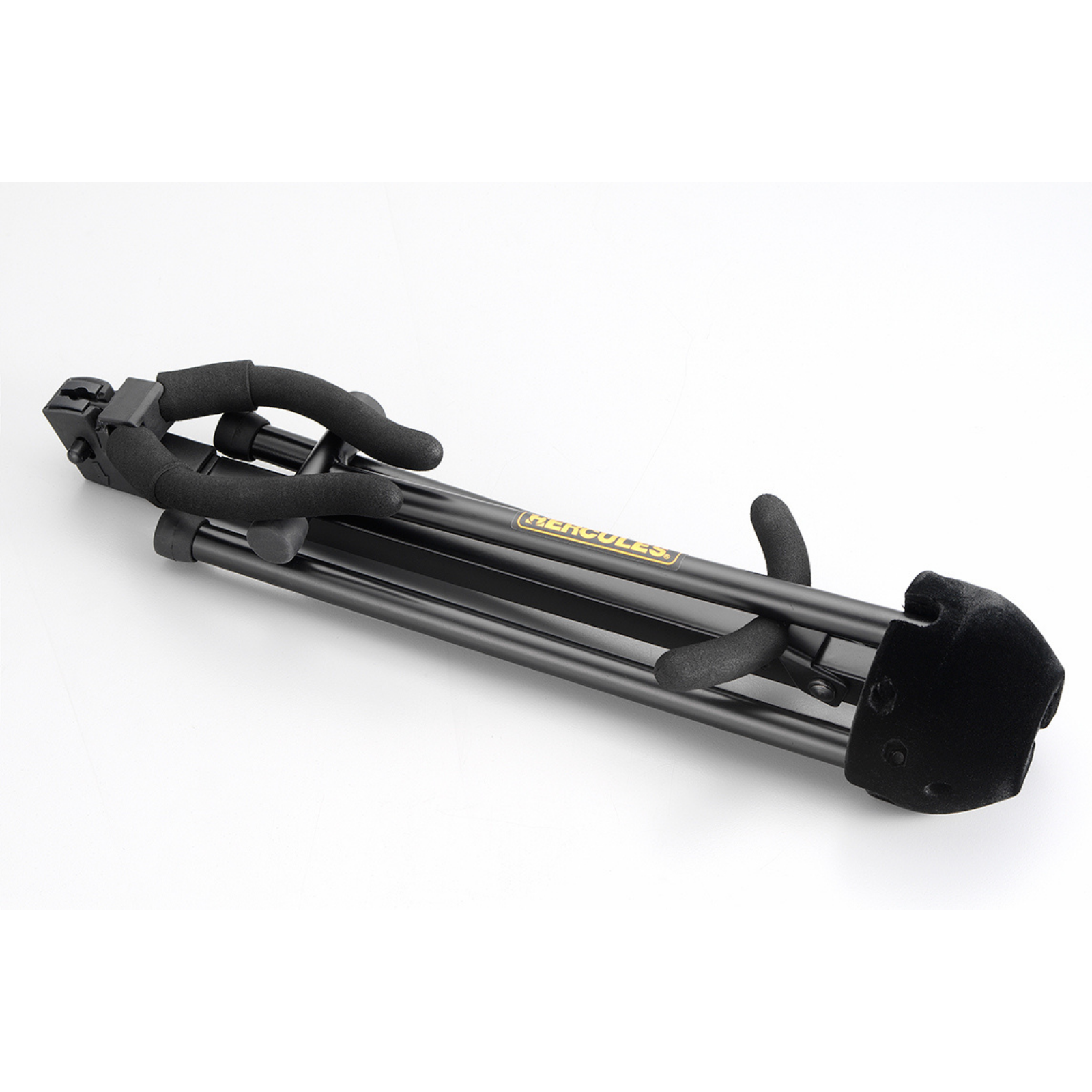 The HERCULES TravLite Tenor Saxophone Stand DS432B folds easily and compactly and stores inside the bell of the instrument; velvet pads protect the instrument.FEATURES: