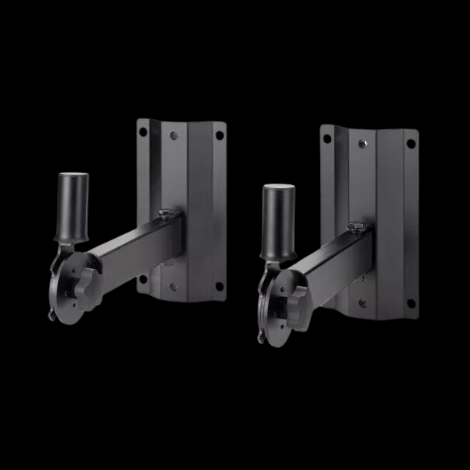 Our versatile SS7322B Adjustable Wall-Mount Speaker Bracket mounts speakers to walls-no need for a stand on the floor. For precise sound direction, this bracket positions speakers facing either straight ahead or at an adjustable downward angle while the hinged support arm enables swiveling 30° side to side. Its heavy-duty construction keeps speakers properly balanced for reliable placement.
